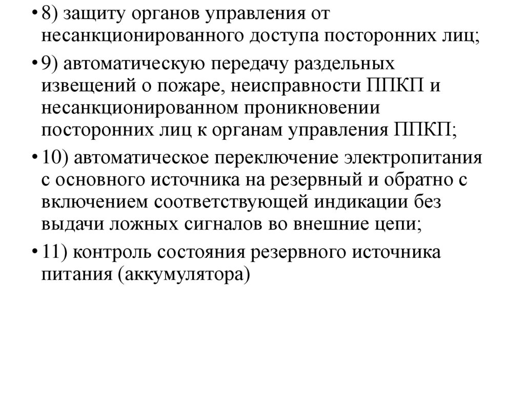 • 8) защиту органов управления отнесанкционированного доступа посторонних лиц;
