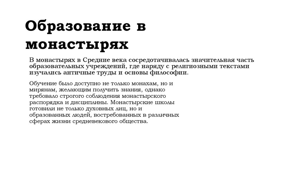 распорядка и дисциплины. Монастырские школы