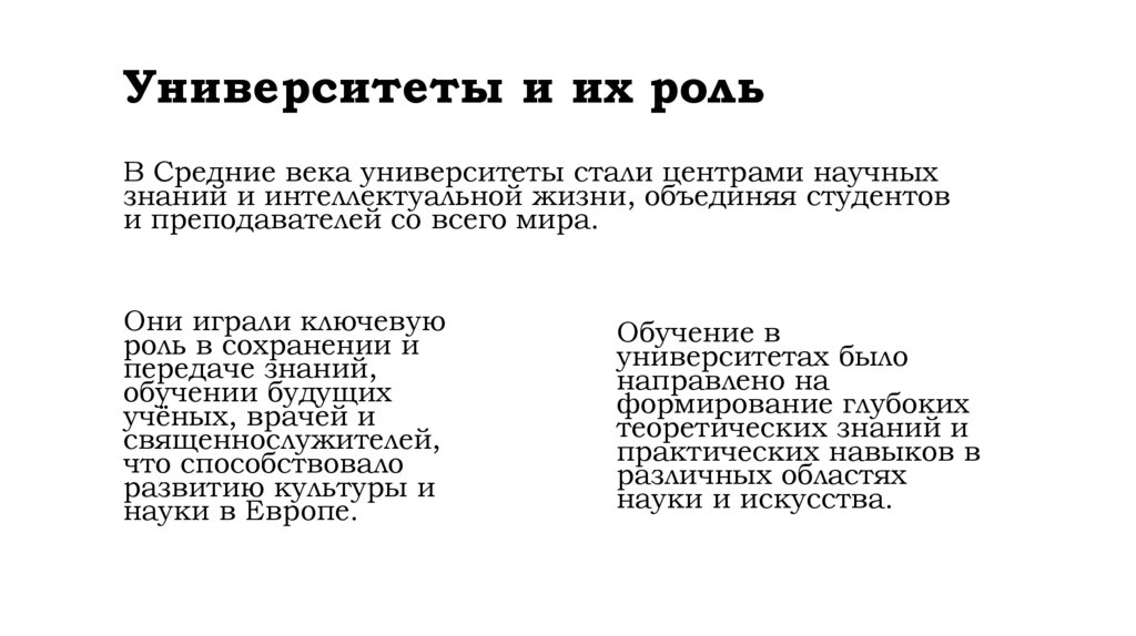 Университеты и их рольВ Средние века университеты стали центрами научных