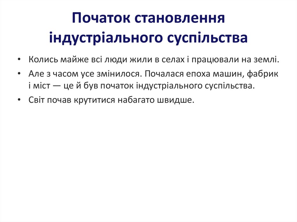 Початок становленняіндустріального суспільства