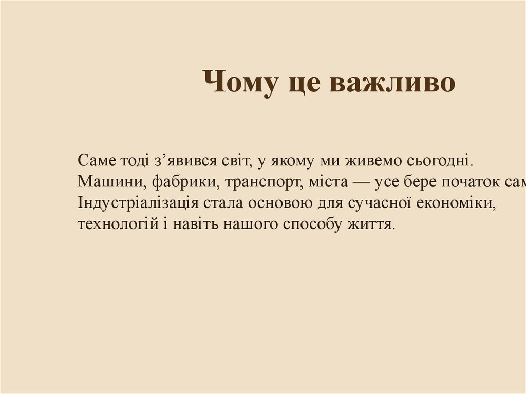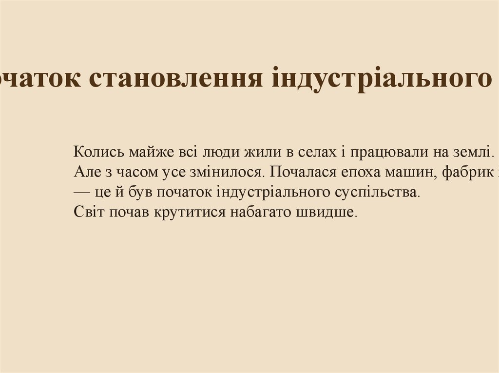 очаток становлення індустріального сКолись майже всі люди жили в селах і працювали на землі.