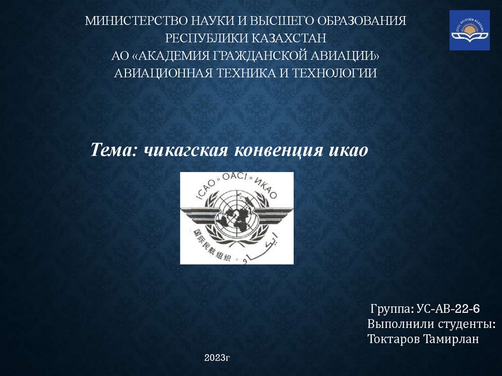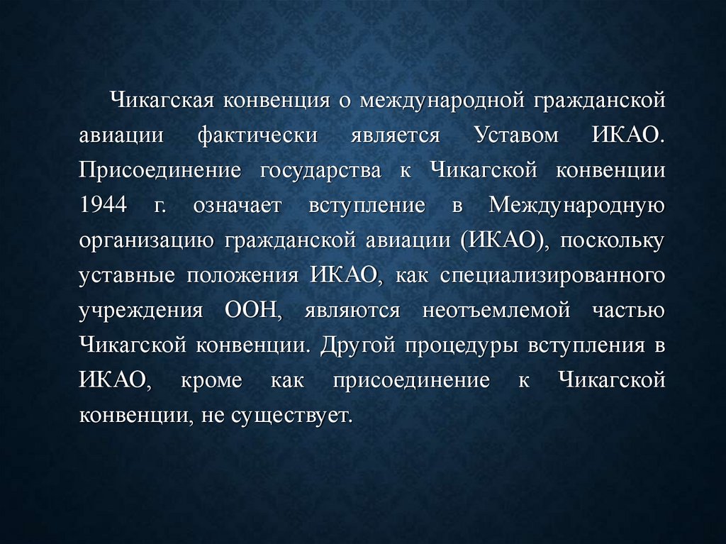 Чикагская конвенция о международной гражданскойавиации фактически является Уставом ИКАО.