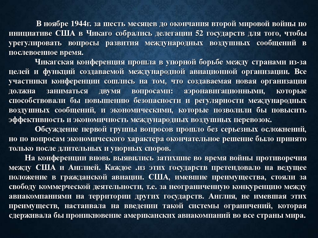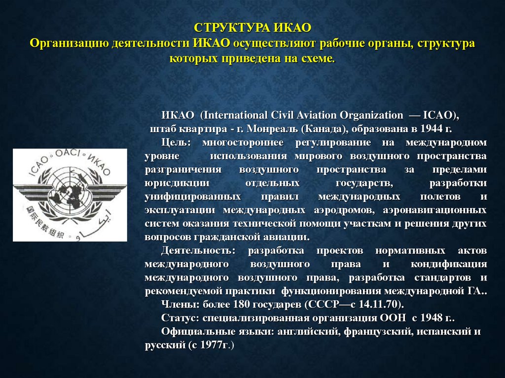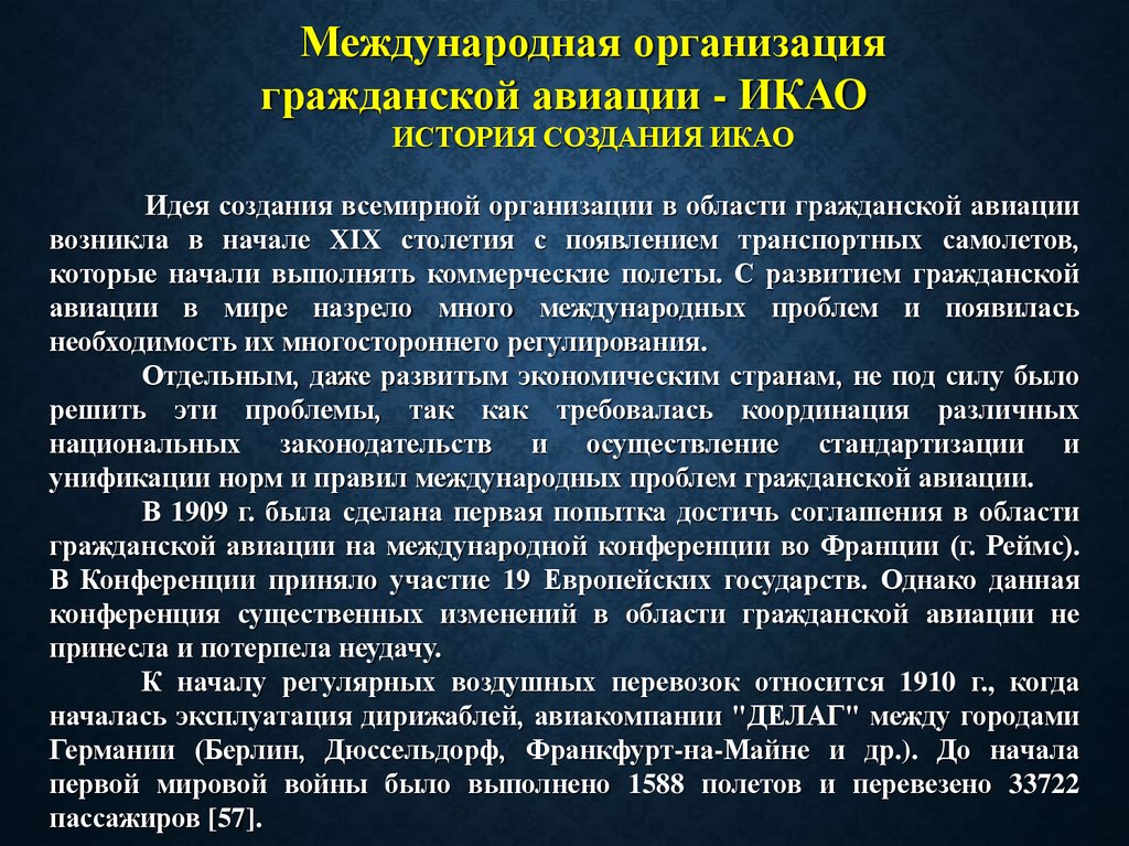 В связи с подписанием Чикагской конвенции 1944г. и образованием ИКАО