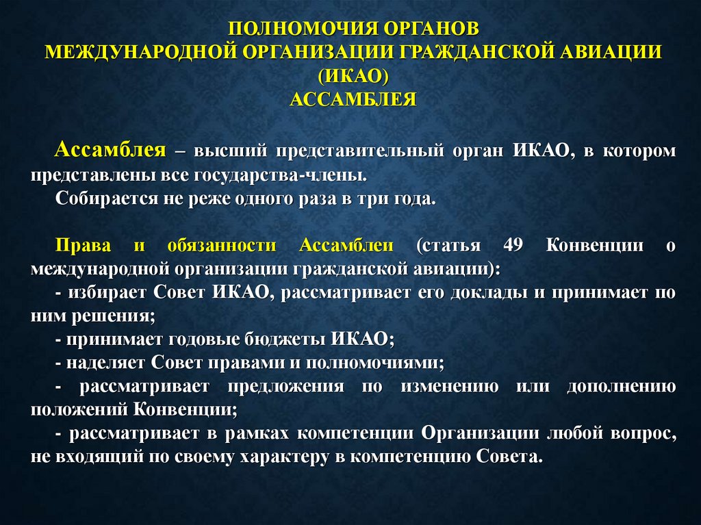 ПОЛНОМОЧИЯ ОРГАНОВМЕЖДУНАРОДНОЙ ОРГАНИЗАЦИИ ГРАЖДАНСКОЙ АВИАЦИИ