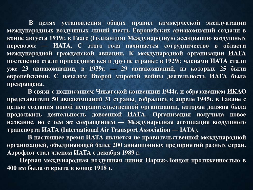 постепенно стали присоединяться и другие страны: в 1929г. членами ИАТА стали
