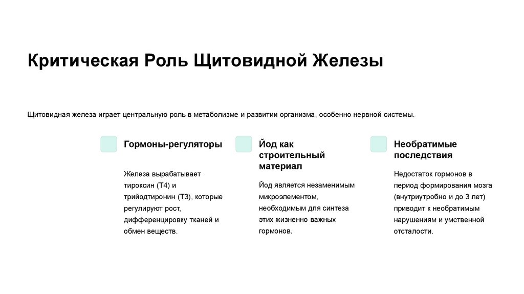 Критическая Роль Щитовидной ЖелезыЩитовидная железа играет центральную роль в метаболизме и развитии организма, особенно нервной системы.