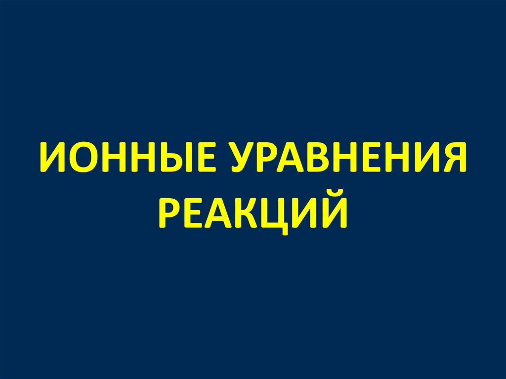 ИОННЫЕ УРАВНЕНИЯРЕАКЦИЙ