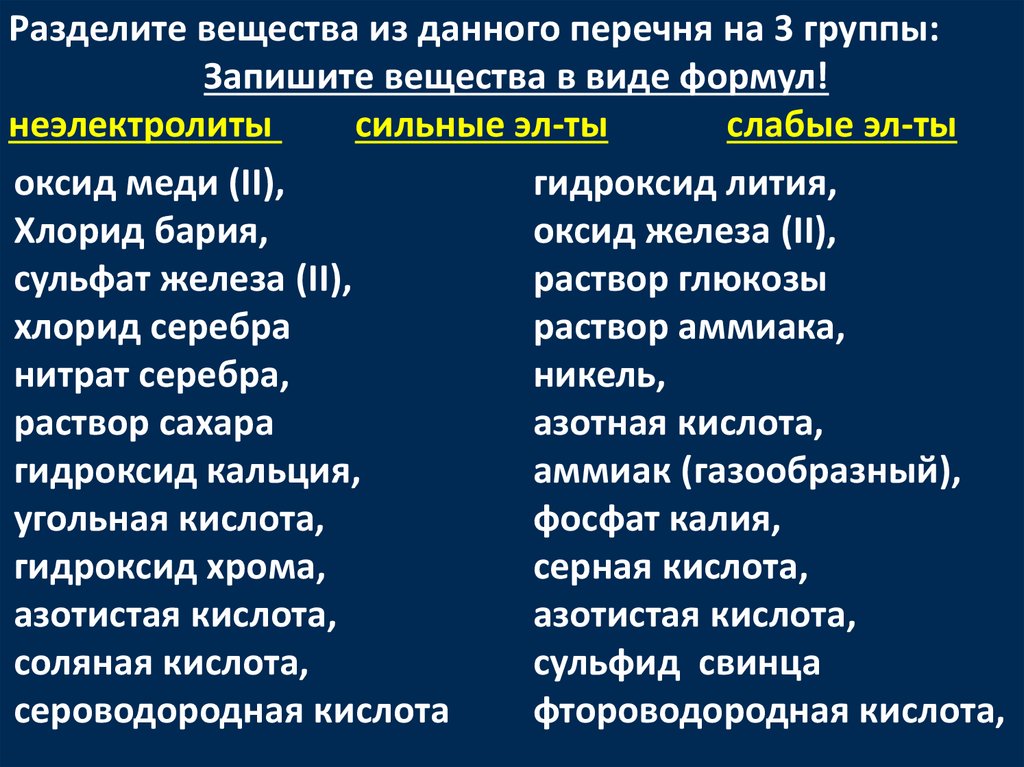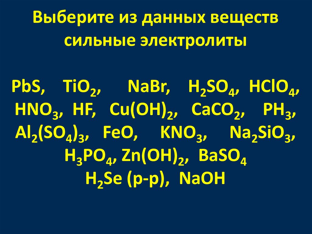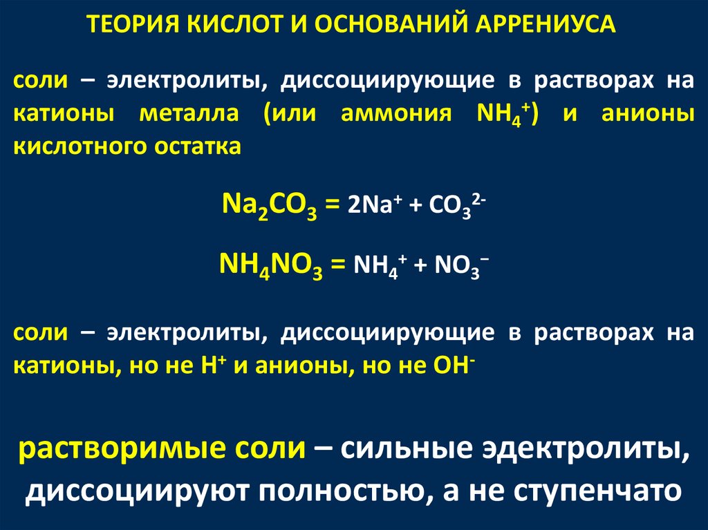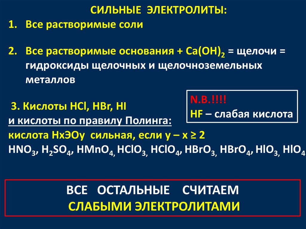СИЛЬНЫЕ ЭЛЕКТРОЛИТЫ:1. Все растворимые соли