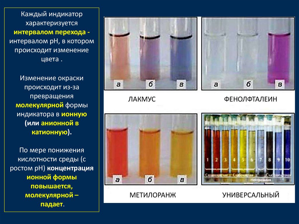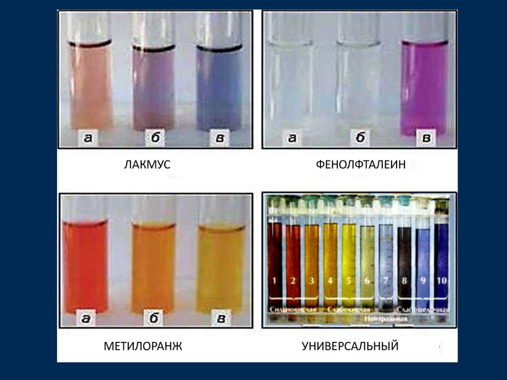 специальных реактивов - ИНДИКАТОРОВ, меняющих окраску в