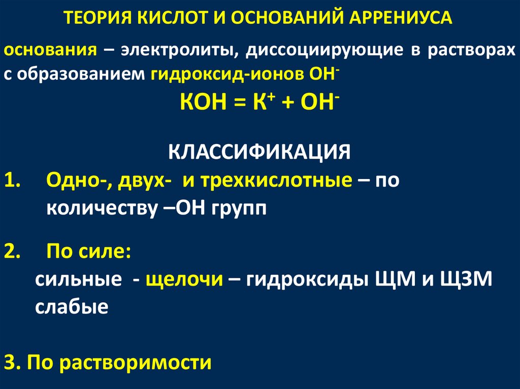 2. Все растворимые основания + Са(ОН)2 = щелочи =