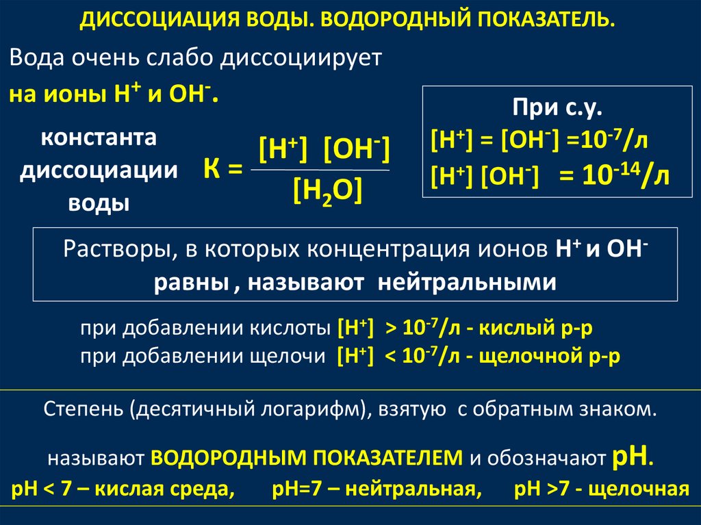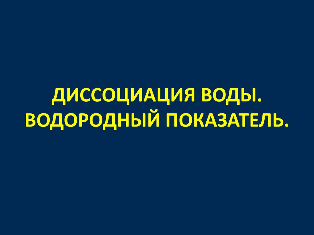 ДИССОЦИАЦИЯ ВОДЫ.ВОДОРОДНЫЙ ПОКАЗАТЕЛЬ.