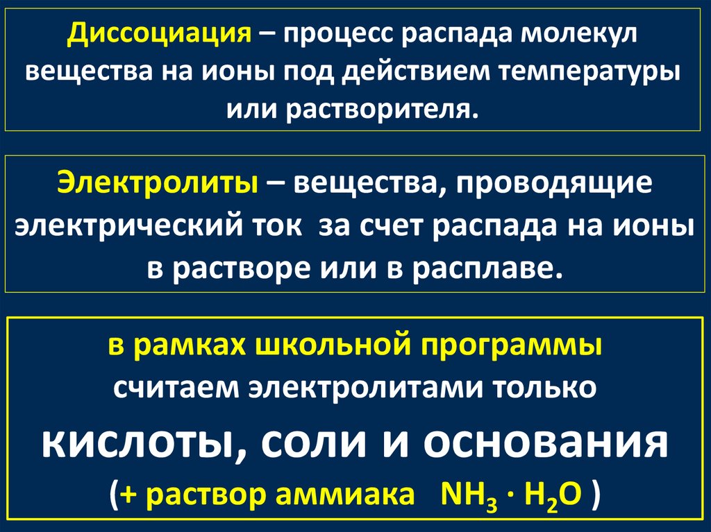 Диссоциация – процесс распада молекулвещества на ионы под действием температуры
