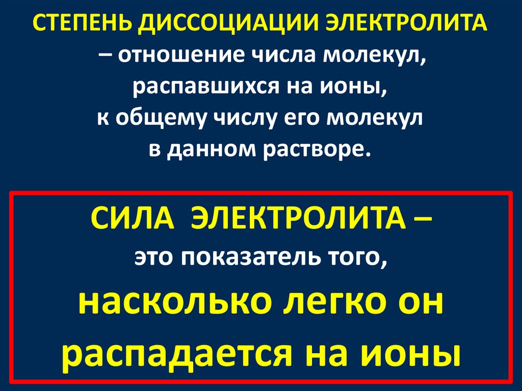 СТЕПЕНЬ ДИССОЦИАЦИИ ЭЛЕКТРОЛИТА– отношение числа молекул,