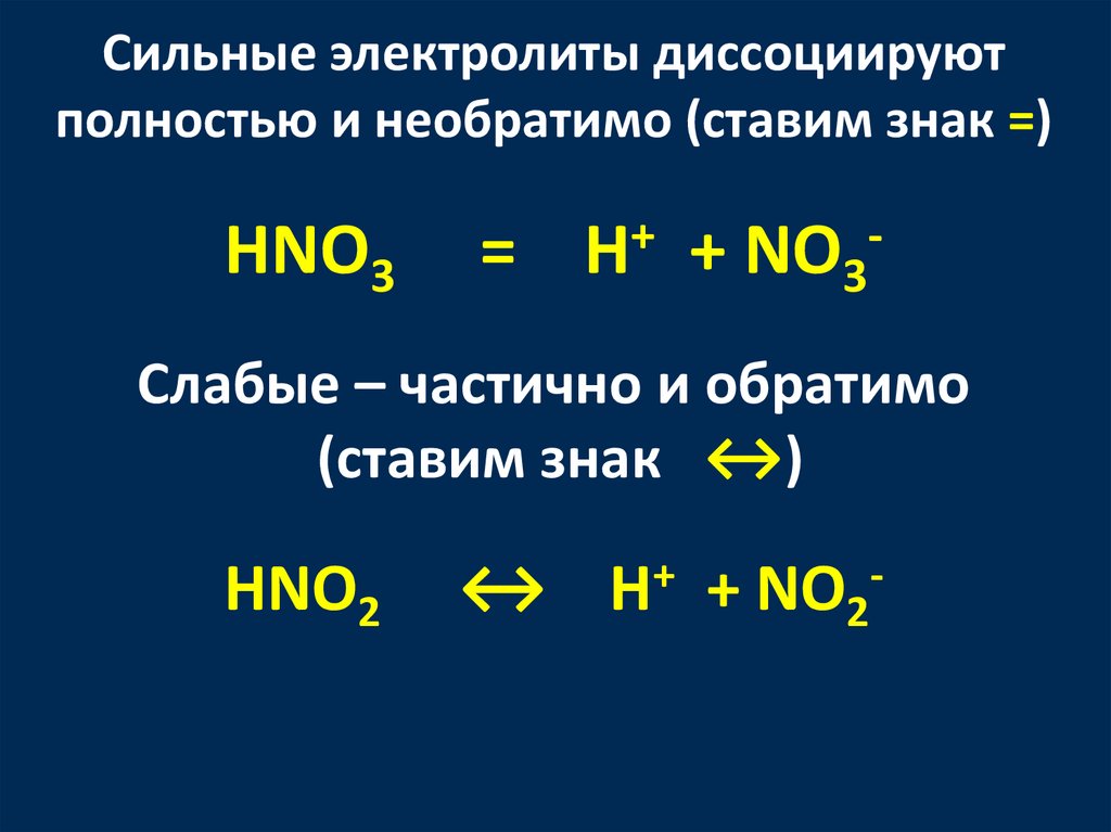Сильные электролиты диссоциируютполностью и необратимо (ставим знак =)