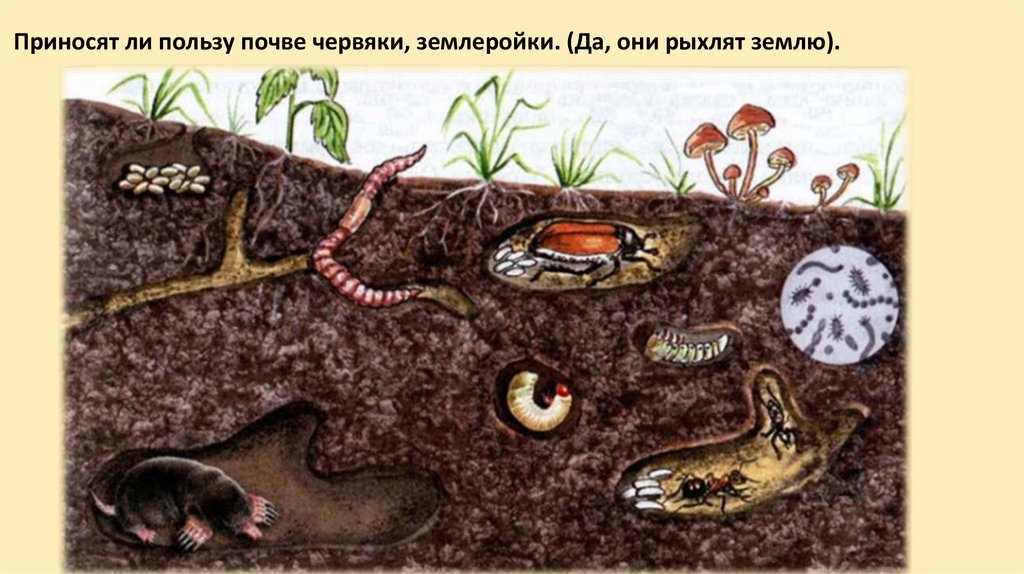 Приносят ли пользу почве червяки, землеройки. (Да, они рыхлят землю).5.