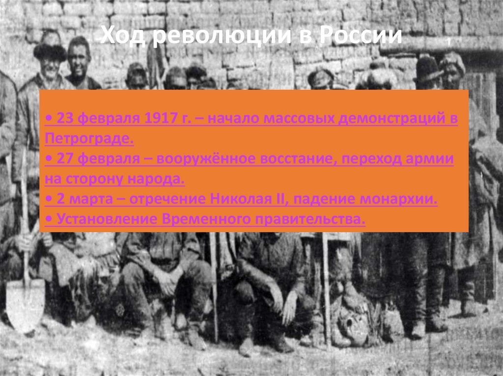Ход революции в России• 23 февраля 1917 г. – начало массовых демонстраций в