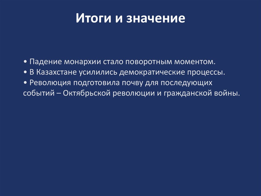 Итоги и значение• Падение монархии стало поворотным моментом.