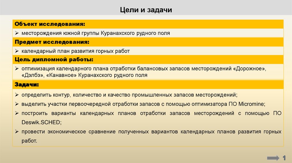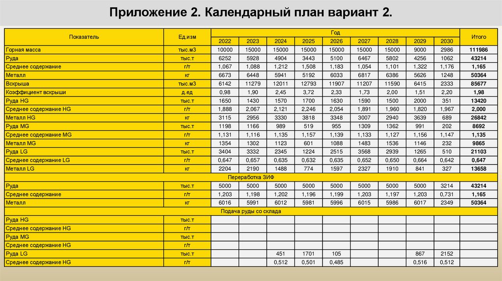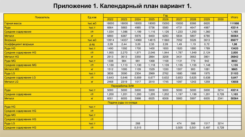 оптимизация календарного плана отработки балансовых запасов месторождений «Дорожное»,