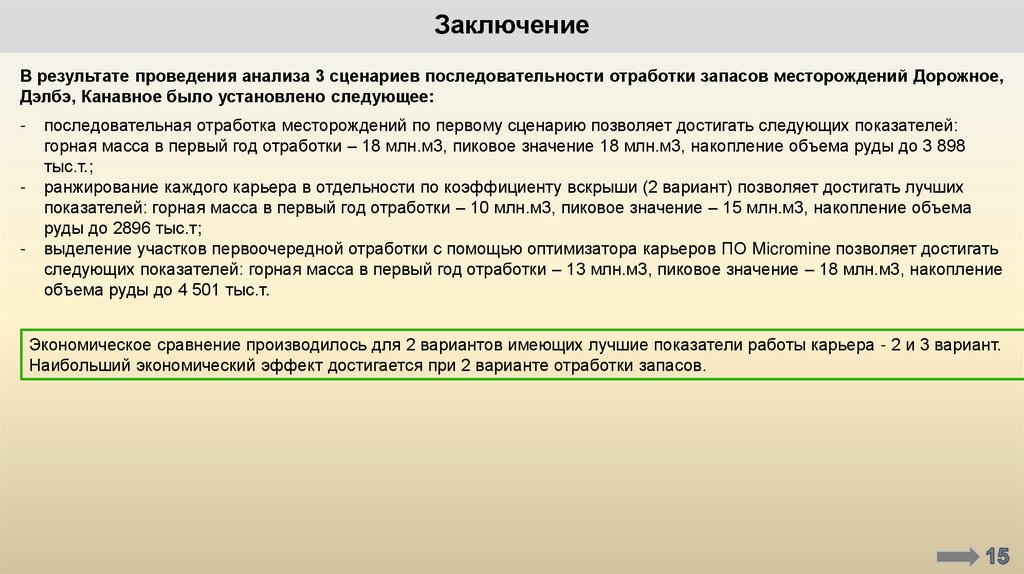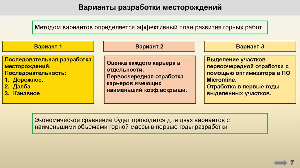 провести экономическое сравнение полученных вариантов календарных планов развития горных