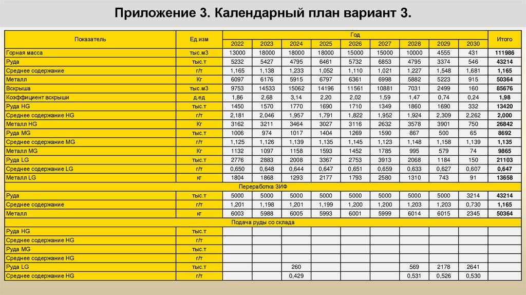построить варианты календарных планов отработки запасов месторождений с помощью ПО