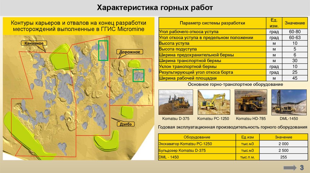 Характеристика горных работКонтуры карьеров и отвалов на конец разработки