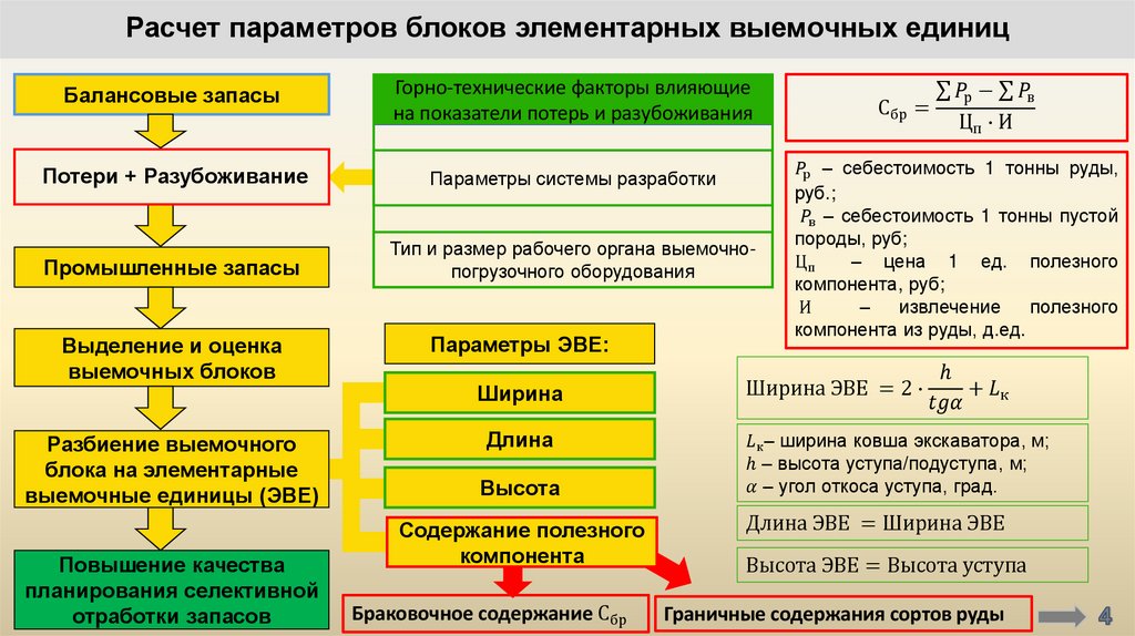 Расчет параметров блоков элементарных выемочных единицБалансовые запасы