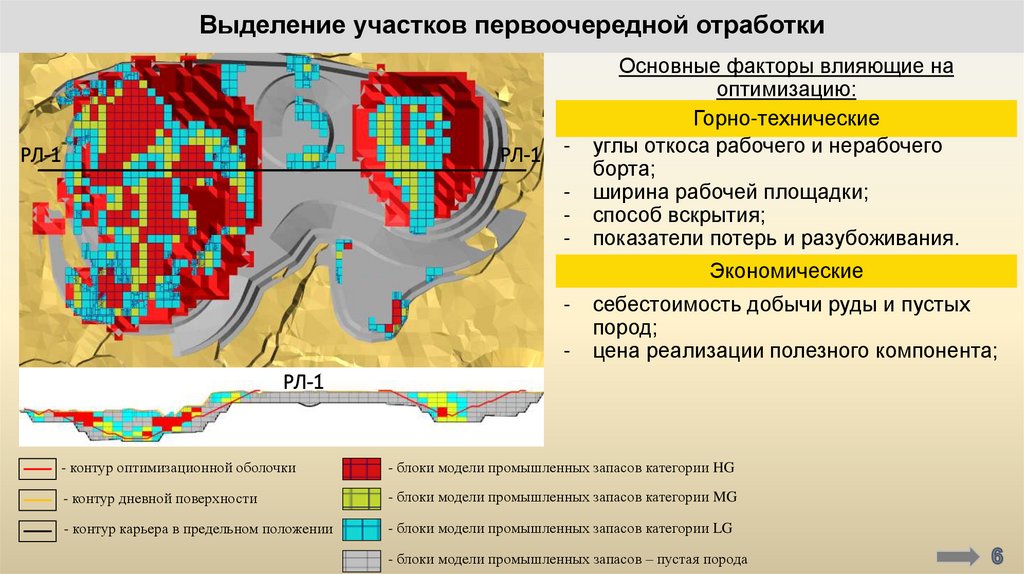 выделить участки первоочередной отработки запасов c помощью оптимизатора ПО Micromine;