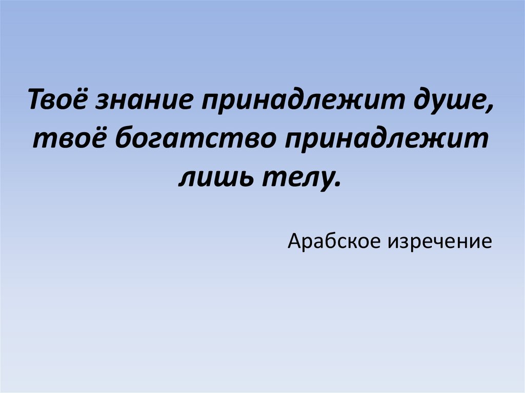 Твоё знание принадлежит душе,твоё богатство принадлежит