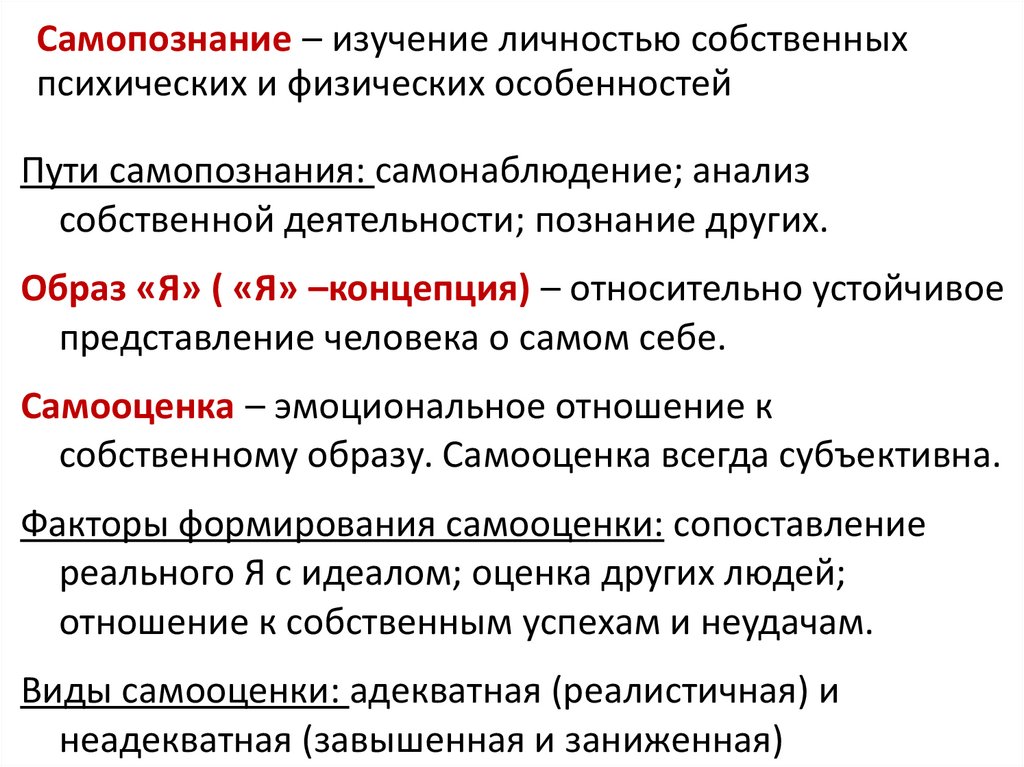 Самопознание – изучение личностью собственныхпсихических и физических особенностей