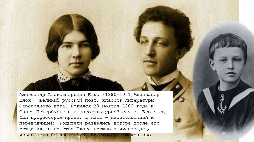 Александр Александрович Блок (1880–1921)АлександрБлок — великий русский поэт, классик литературы
