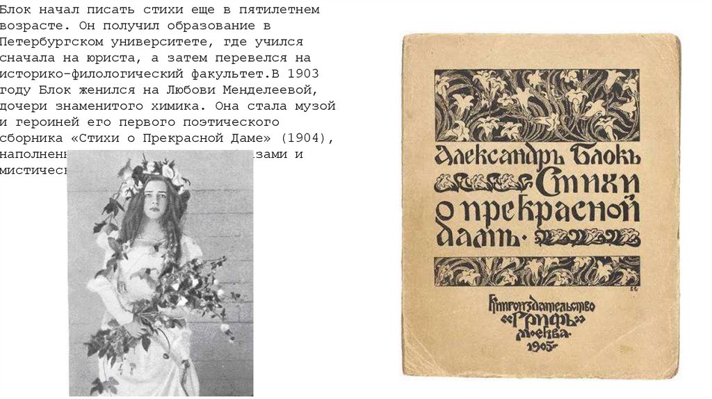 Блок начал писать стихи еще в пятилетнемвозрасте. Он получил образование в