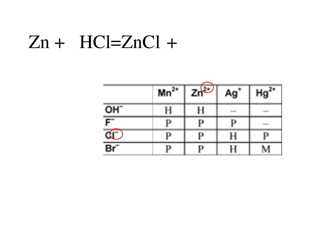 Zn + 2HCl=ZnCl2+H2H2↑8.