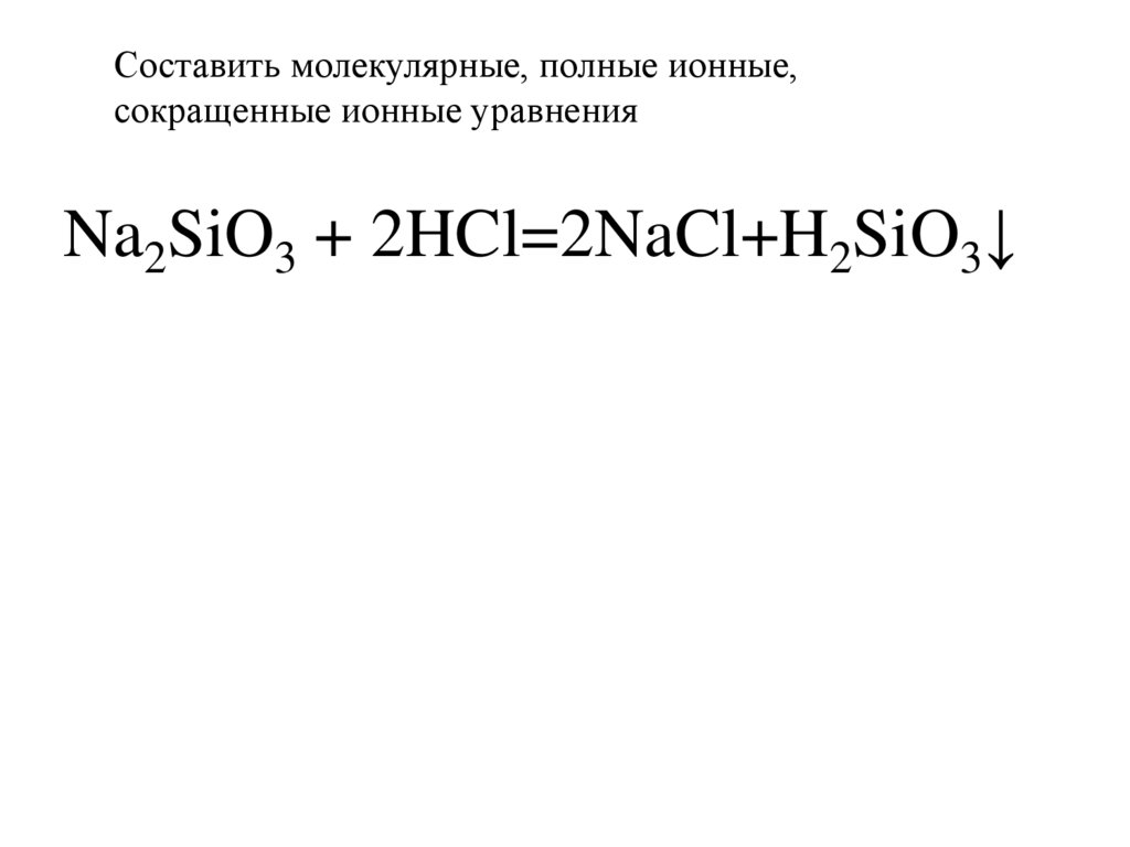 Na2SiO3 + 2HCl=2NaCl+H2SiO3↓