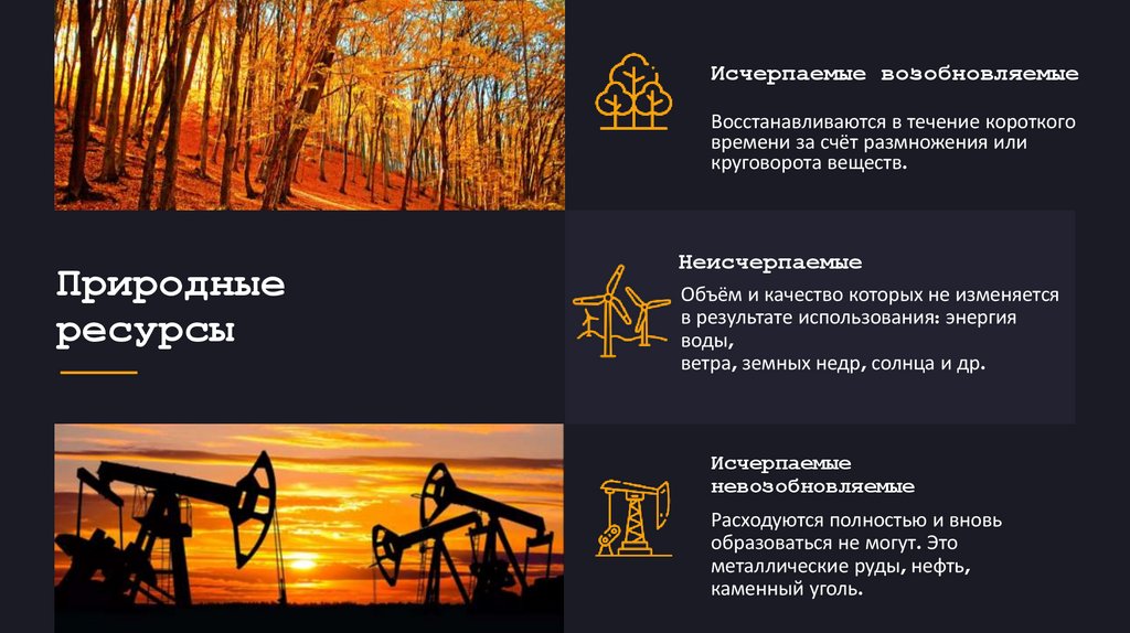 Исчерпаемые возобновляемыеВосстанавливаются в течение короткого