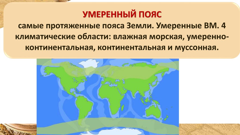 УМЕРЕННЫЙ ПОЯСсамые протяженные пояса Земли. Умеренные ВМ. 4