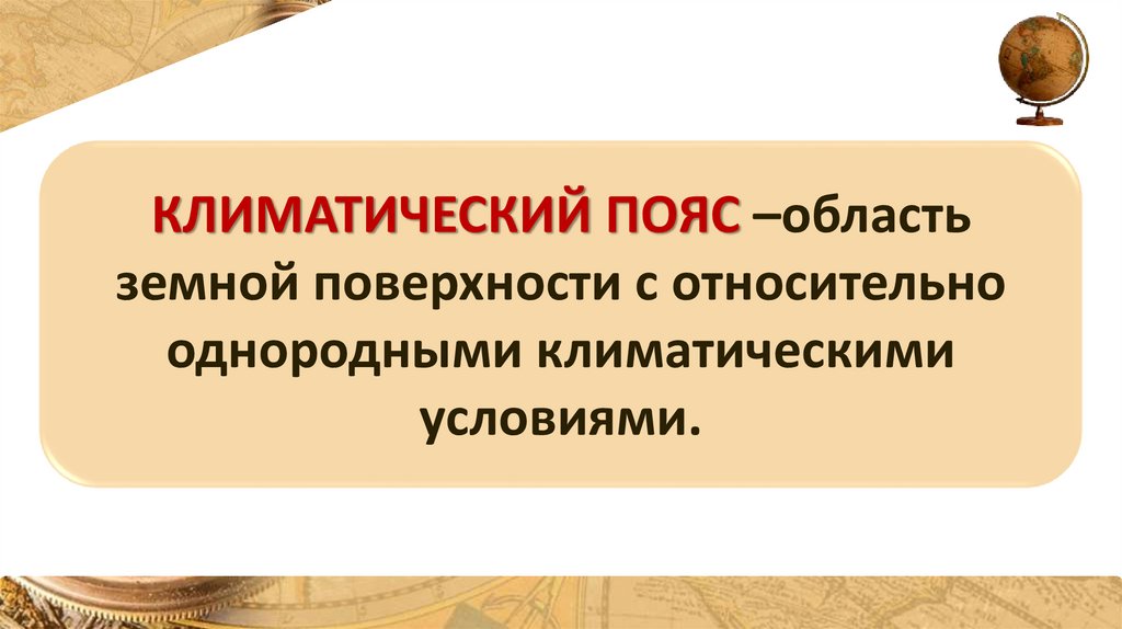 КЛИМАТИЧЕСКИЙ ПОЯС –областьземной поверхности с относительно