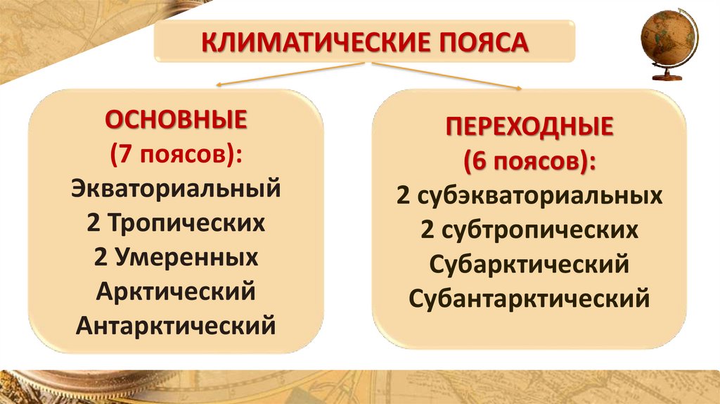 КЛИМАТИЧЕСКИЕ ПОЯСАОСНОВНЫЕ