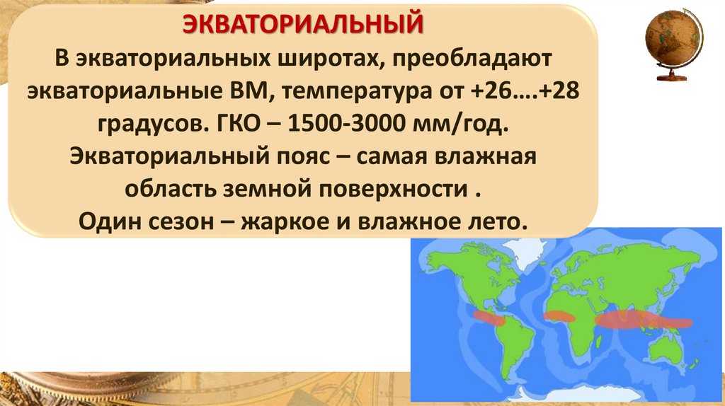 ЭКВАТОРИАЛЬНЫЙВ экваториальных широтах, преобладают