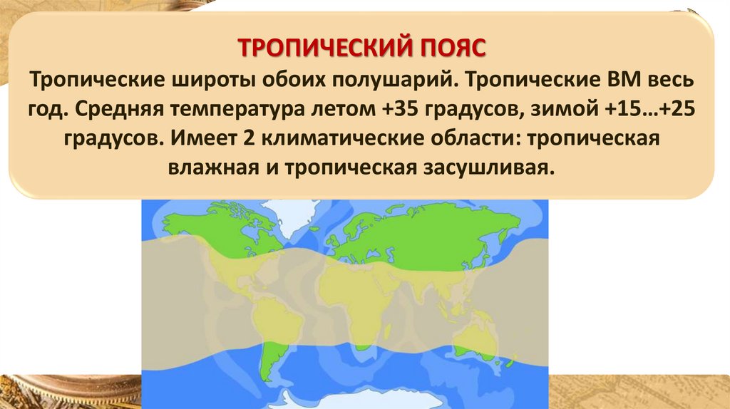 ТРОПИЧЕСКИЙ ПОЯСТропические широты обоих полушарий. Тропические ВМ весь