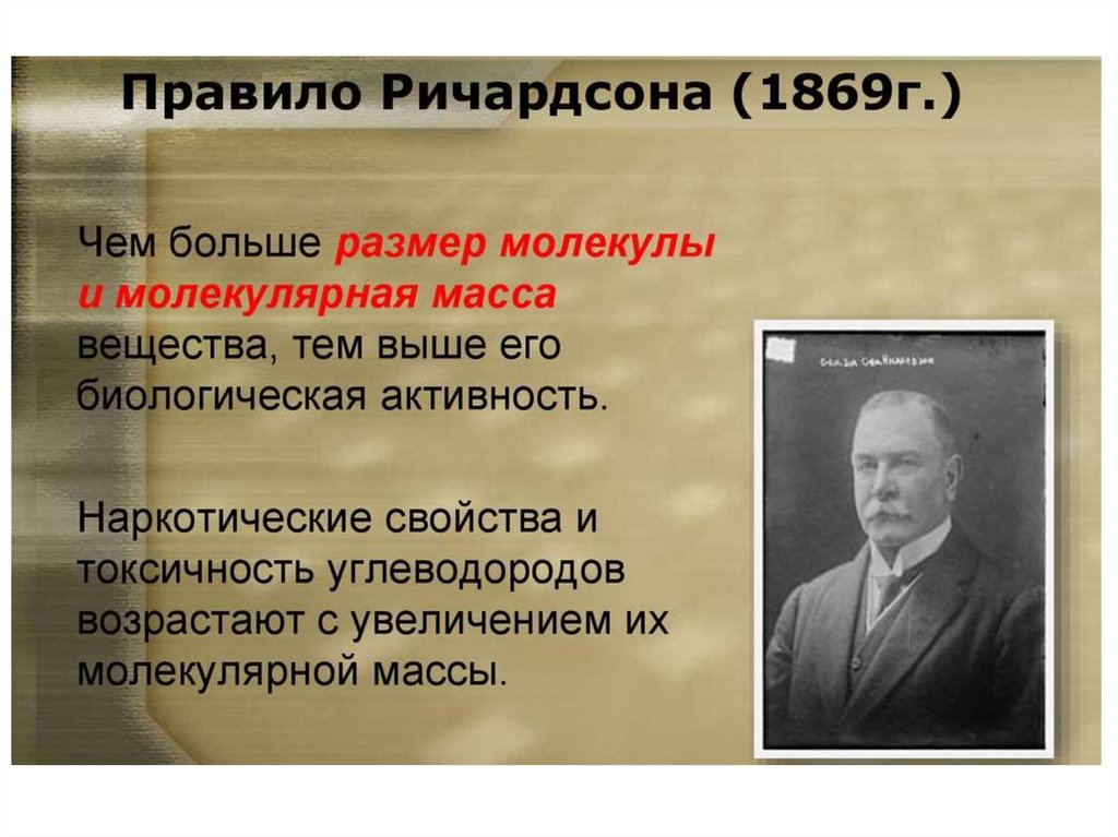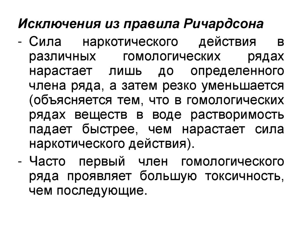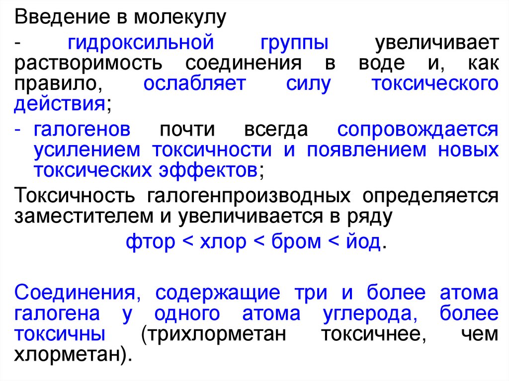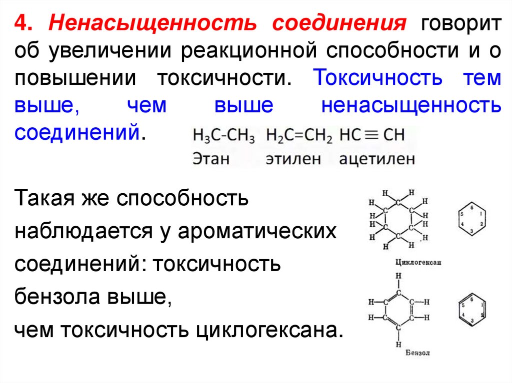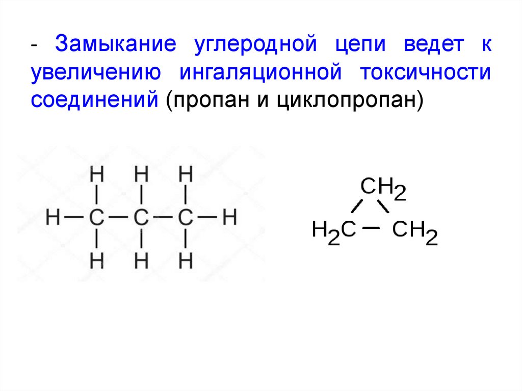 - Замыкание углеродной цепи ведет кувеличению ингаляционной токсичности