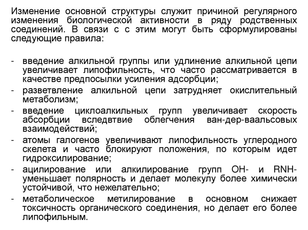 Изменение основной структуры служит причиной регулярногоизменения биологической активности в ряду родственных