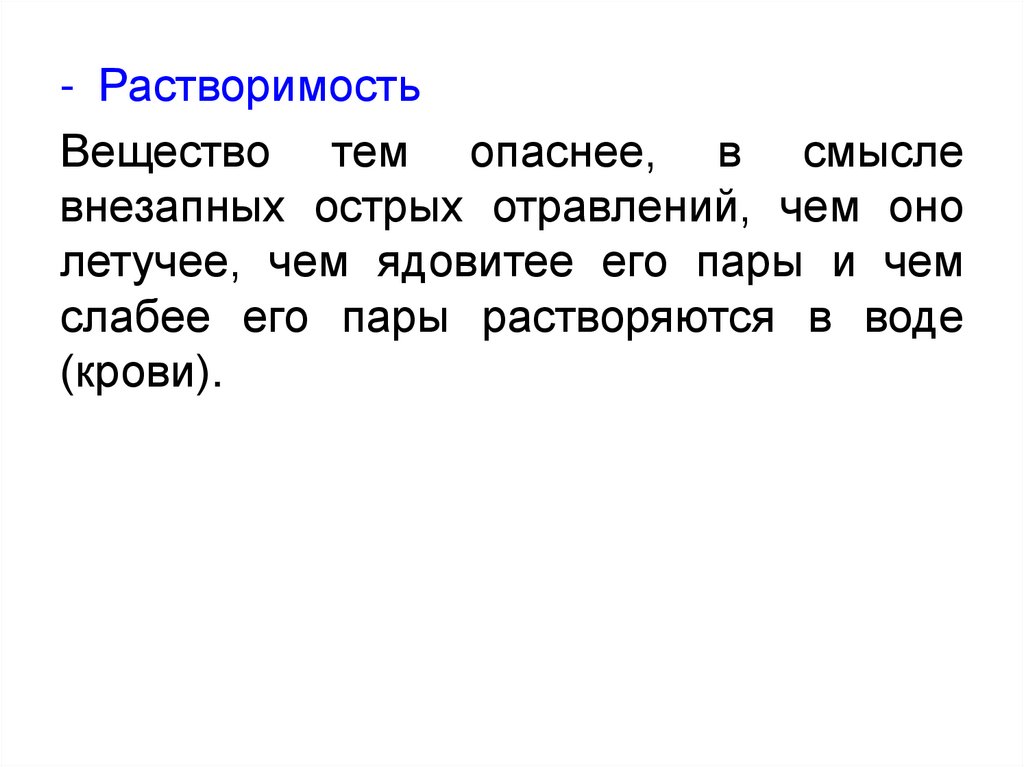 - ЛетучестьТоксичные свойства веществ тем больше,