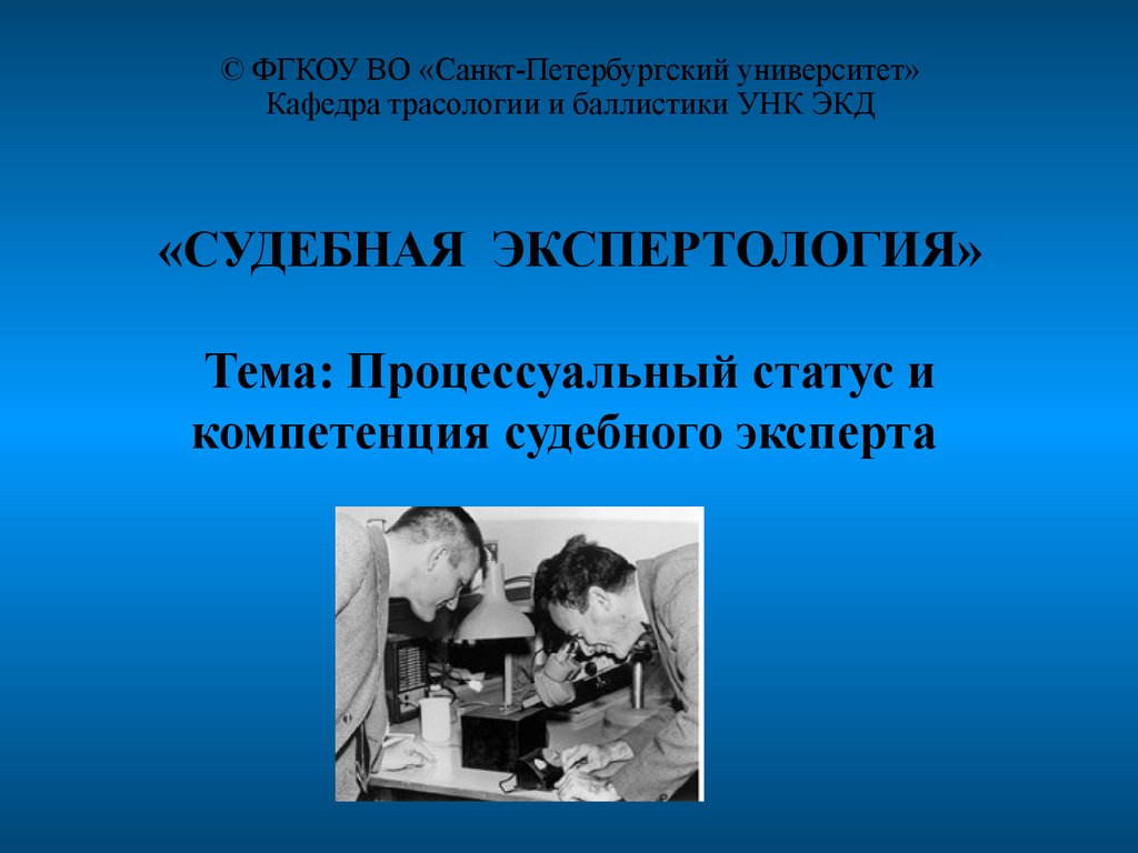 © ФГКОУ ВО «Санкт-Петербургский университет»Кафедра трасологии и баллистики УНК ЭКД