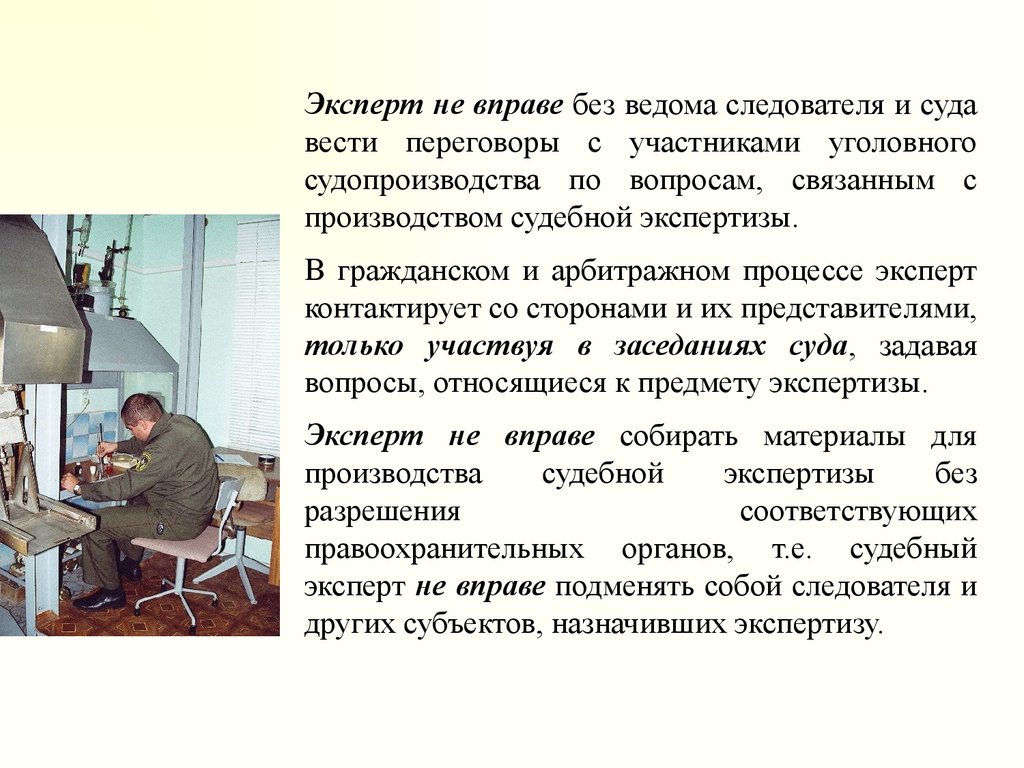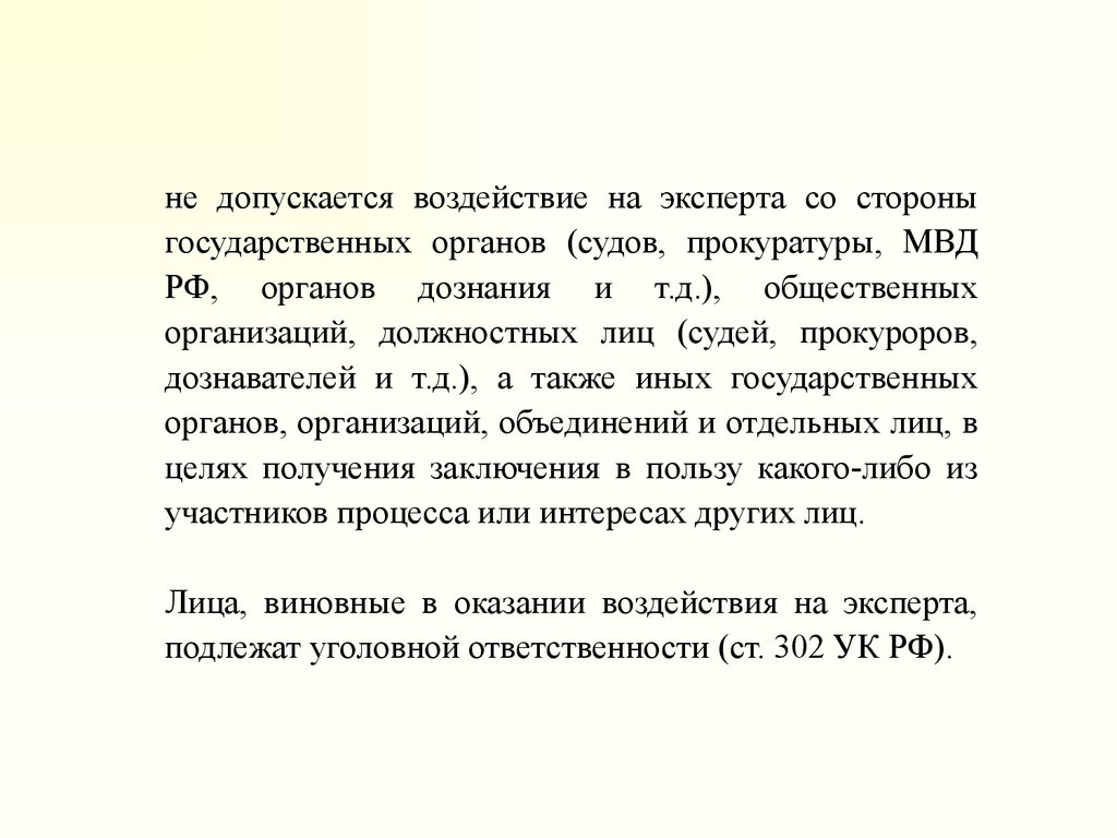 не допускается воздействие на эксперта со стороныгосударственных органов (судов, прокуратуры, МВД