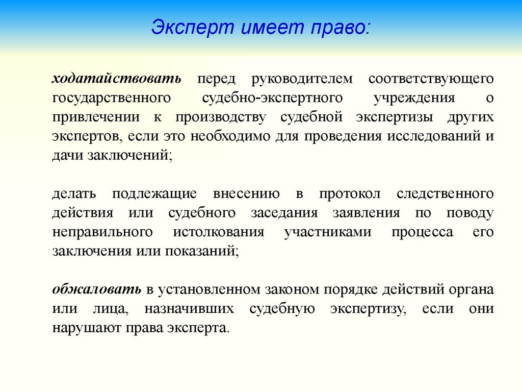 Согласно новому процессуальномузаконодательству судебный эксперт