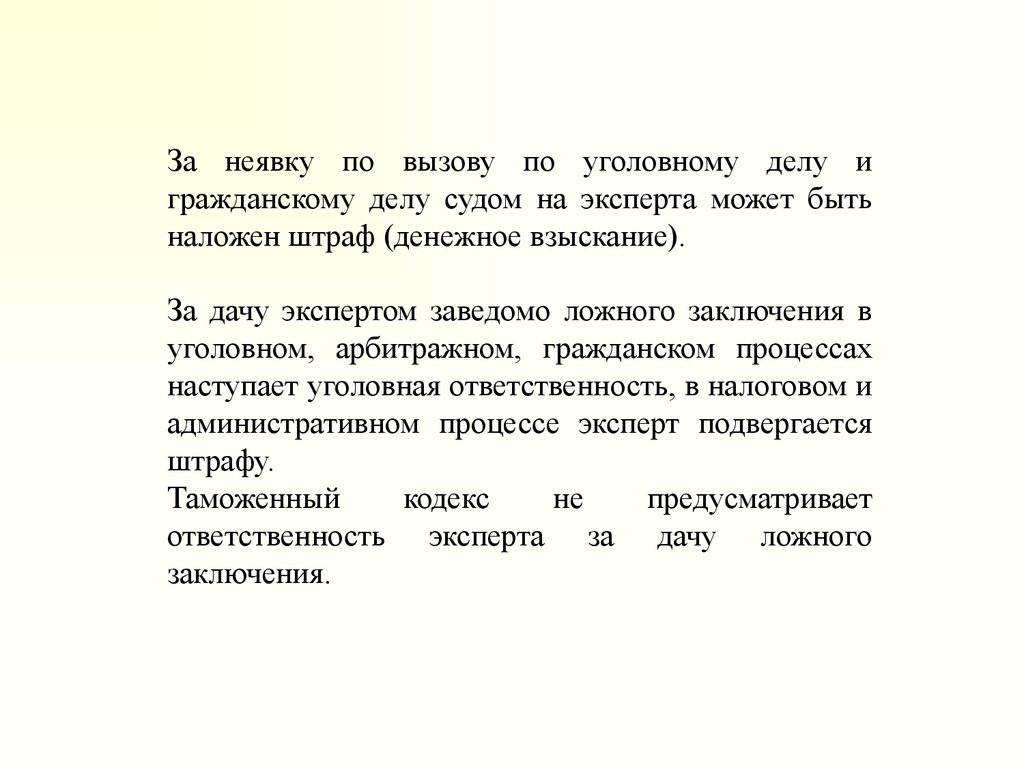 За неявку по вызову по уголовному делу игражданскому делу судом на эксперта может быть