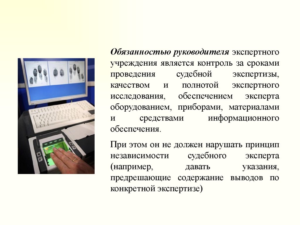 Обязанностью руководителя экспертногоучреждения является контроль за сроками
