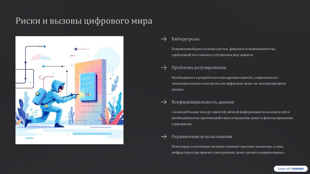 Несмотря на преимущества, существуют риски кибербезопасности, необходимость оплаты комиссий за некоторые операции и ограничения в приеме таких средств в