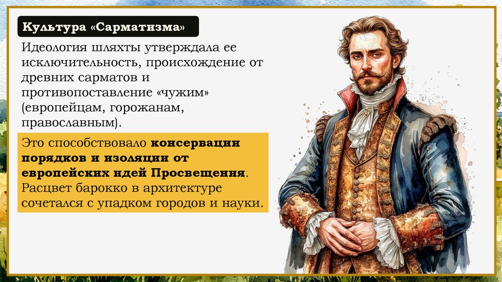 Культура «Сарматизма»Идеология шляхты утверждала ее