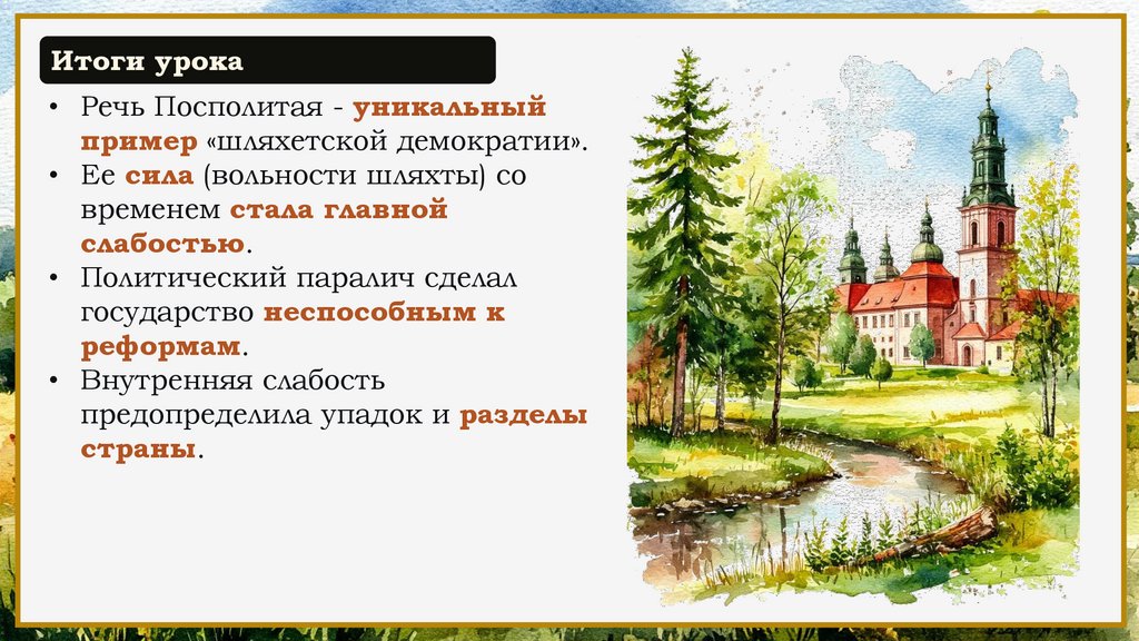 Итоги урока• Речь Посполитая - уникальный